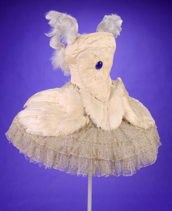 A second Swan costume forms part of a large collection of historic dance costumes and ephemera collected by Californian artist, designer and author, Joseph Rous Paget-Fredericks, b. 1903 – d.1963, and gifted to The Bancroft Library. The costumes are on long-term loan to the de Young, Fine Arts Museums of San Francisco.
