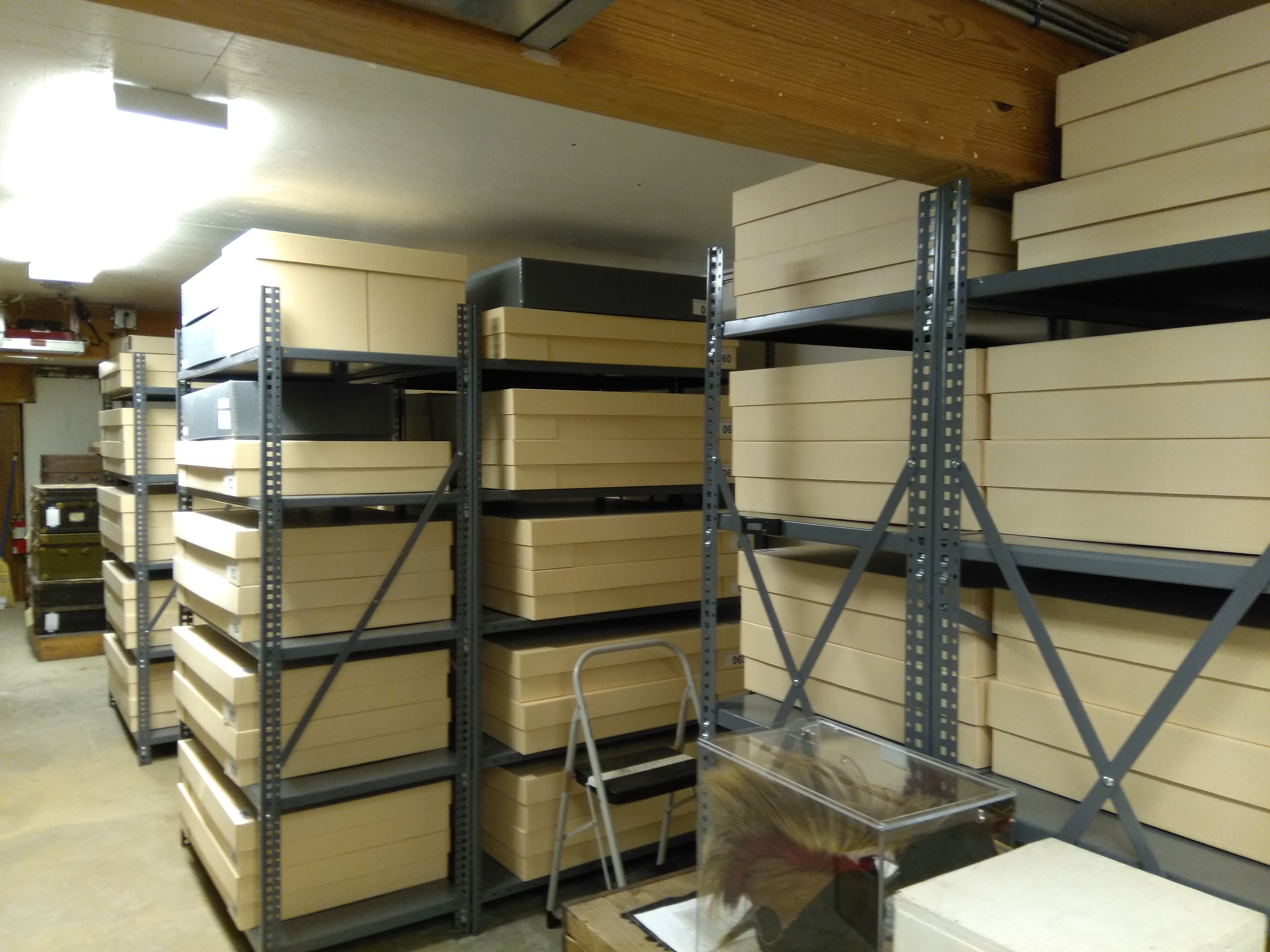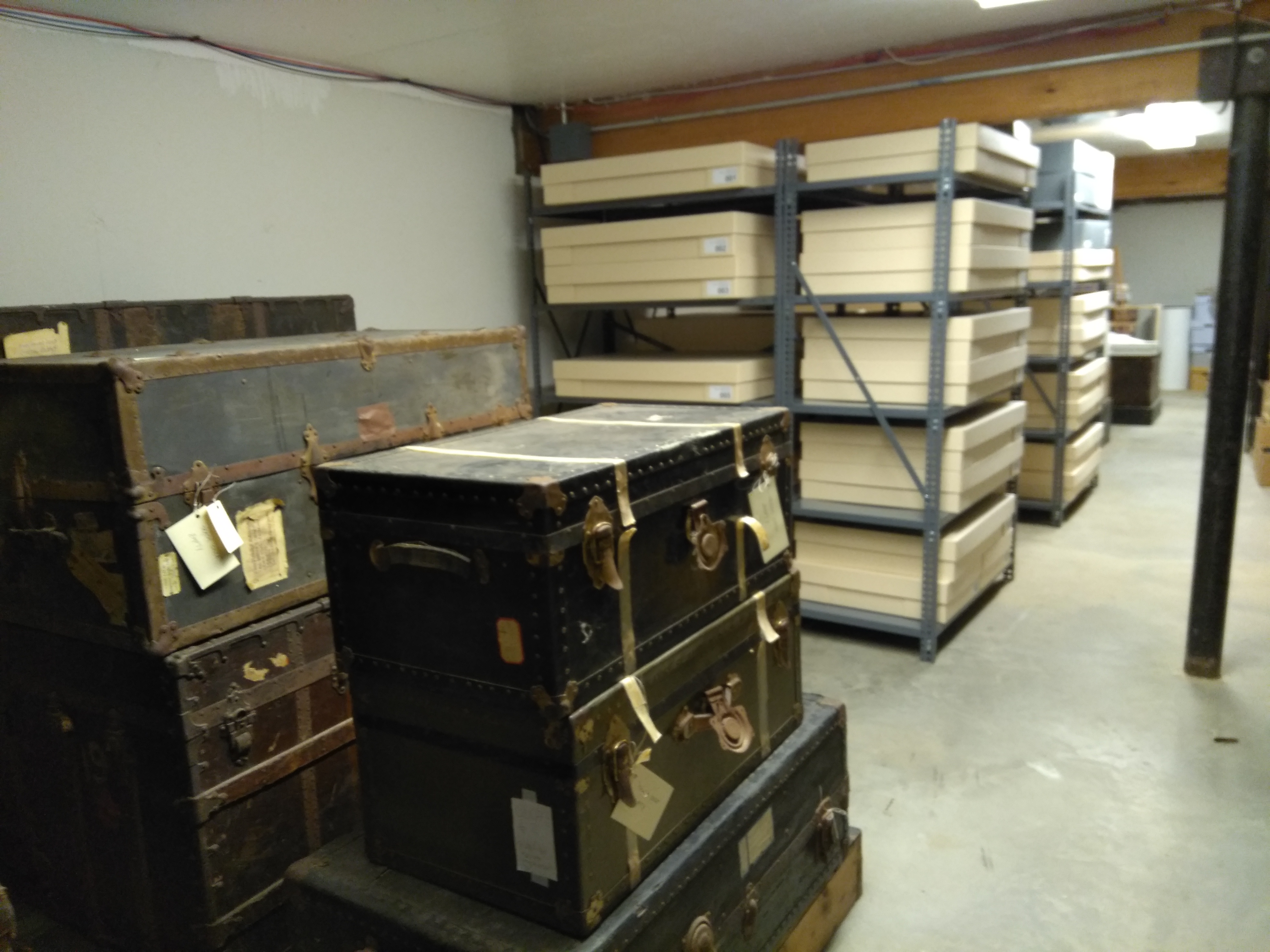 The costume items, now housed in over 100 new acid free boxes and are now on new shelving in Blake’s Barn basement.