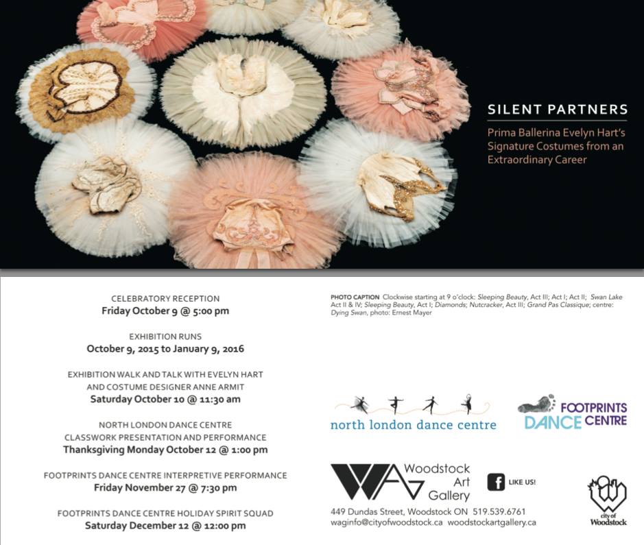 Assistant Curator and costume mounter for the exhibition Silent Partners: Prima Ballerina Evelyn Hart’s Signature Costumes from an Extraordinary Career. The exhibition opened at Woodstock Art Gallery, Ontario, Canada, and ran from October 2015 – January 2016.