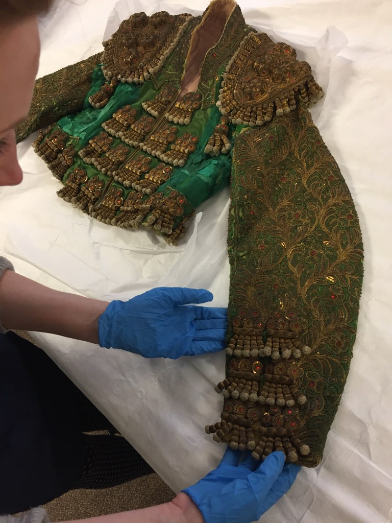 I am very interested in tracing the history of who made these costumes and in examining the costumes themselves as important primary resources. I have undertaken a lot of work in researching and identifying these surviving pieces.
